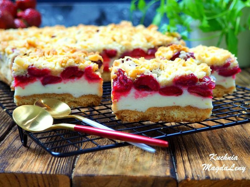 CIASTO Z PIANKĄ BUDYNIOWĄ I WIŚNIAMI