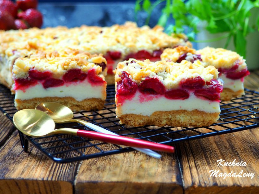 Ciasto z pianką budyniową i wiśniami