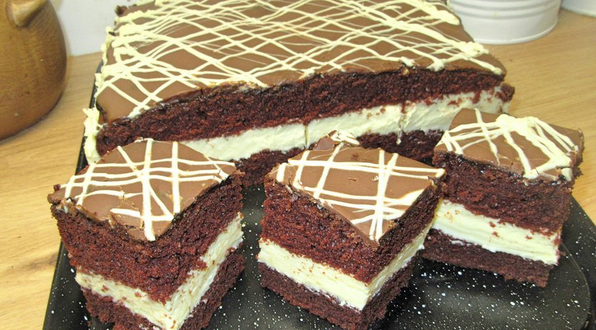 sernik na kakaowym cieście z polewą czekoladową -mięciuteńki i kremowy