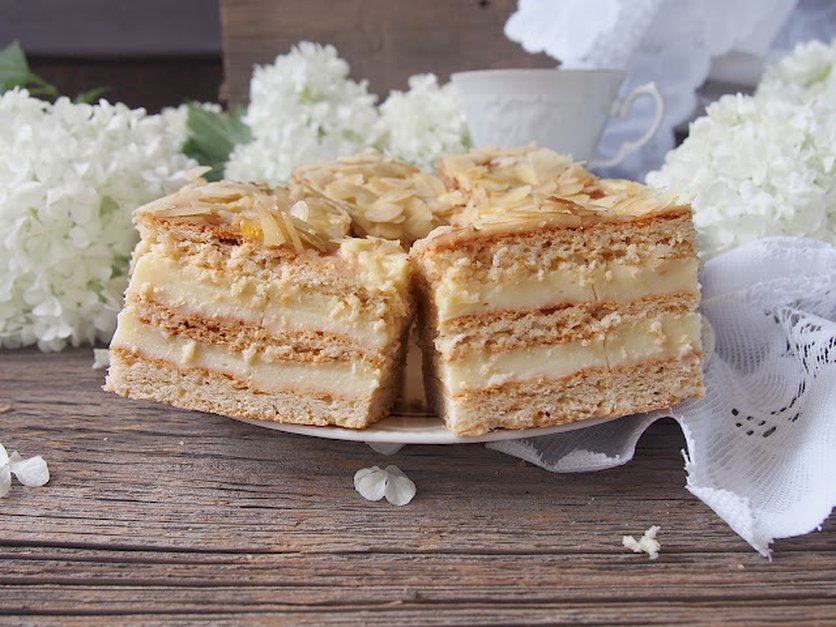 kruche ciasto z kremem budyniowym