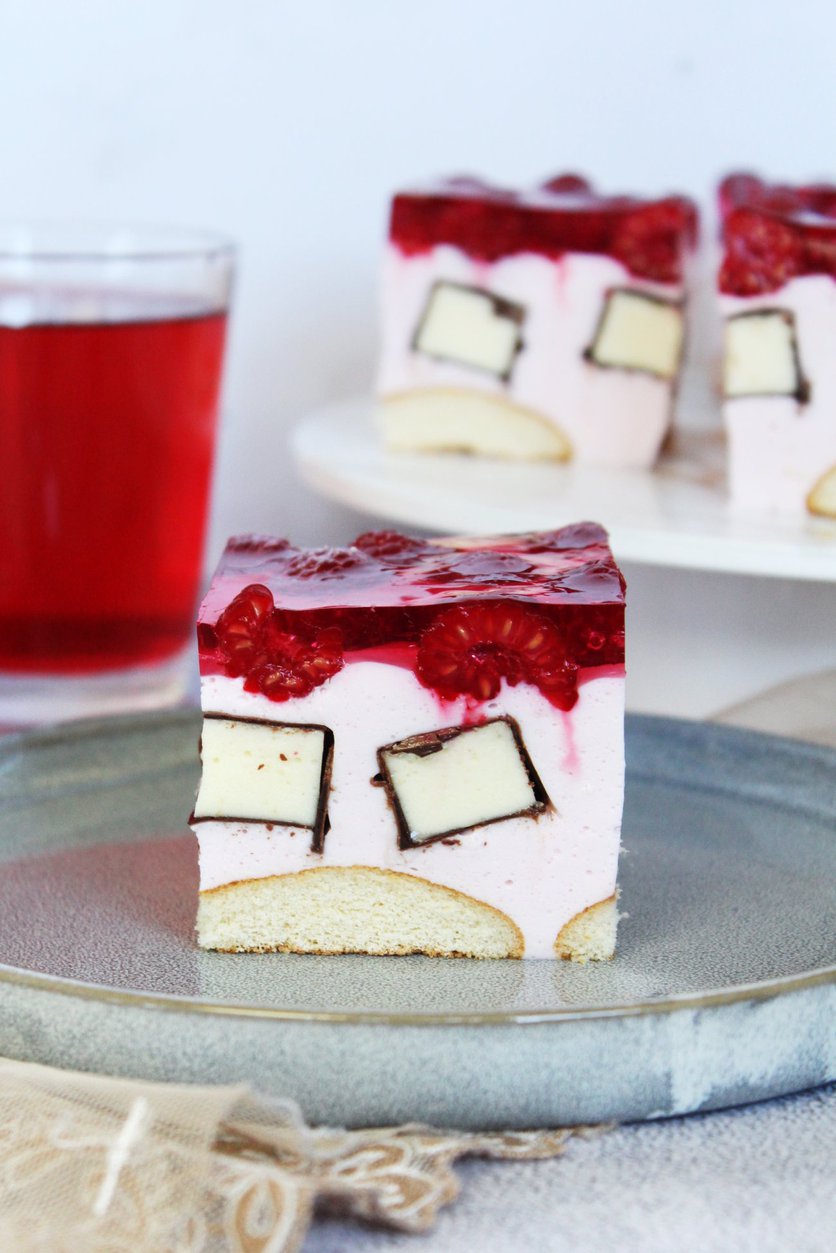Malinowe ciasto z Ptasim Mleczkiem i galaretką