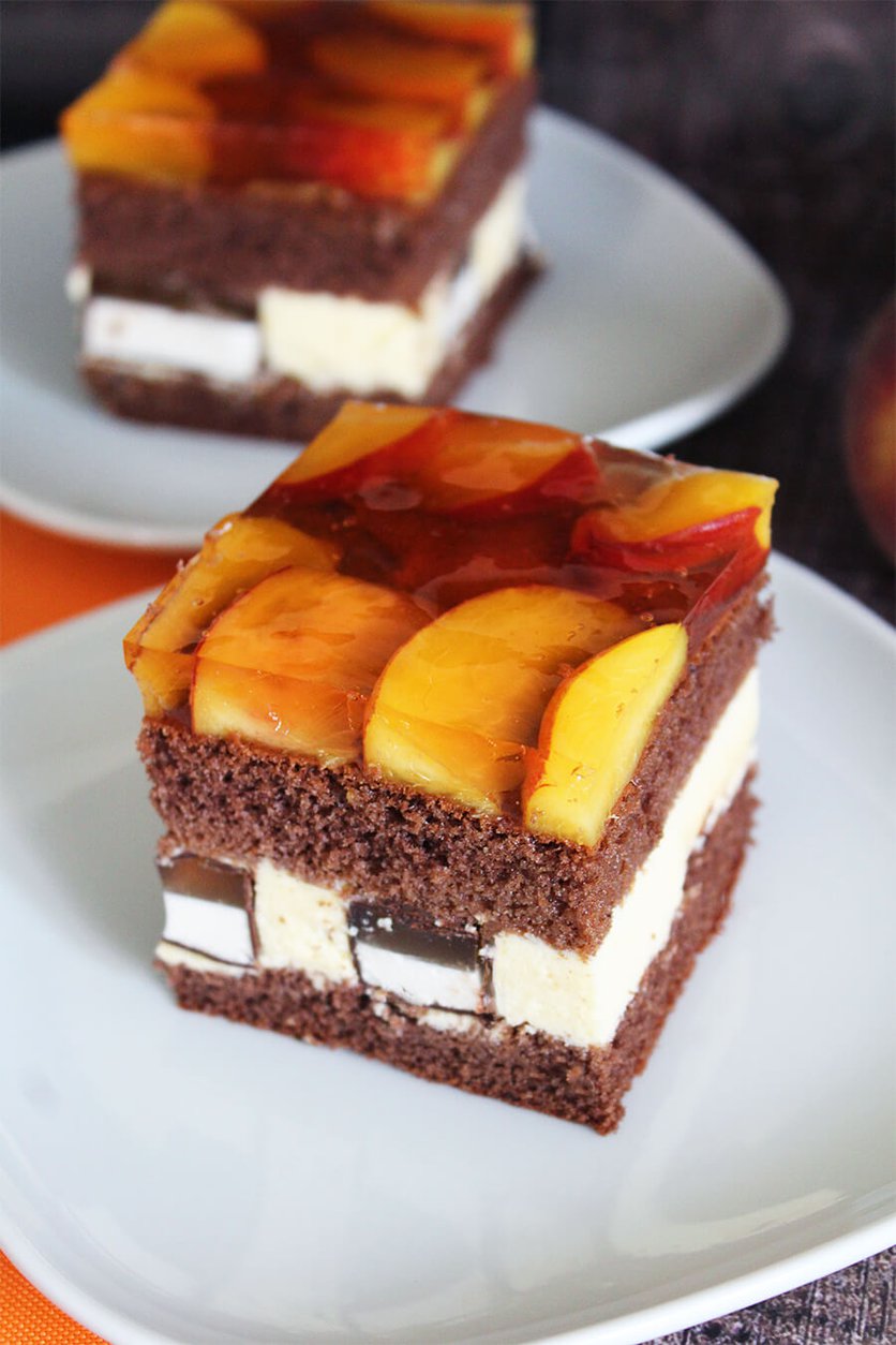 Ciasto z Ptasim Mleczkiem i brzoskwiniami
