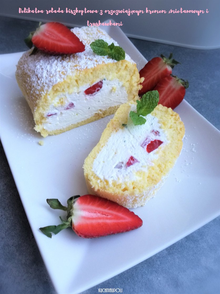 Rolada biszkoptowa z kremem śmietanowym i truskawkami
