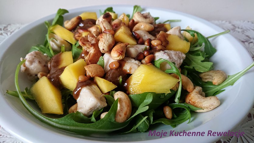 Sałatka z kurczakiem, rukolą i mango