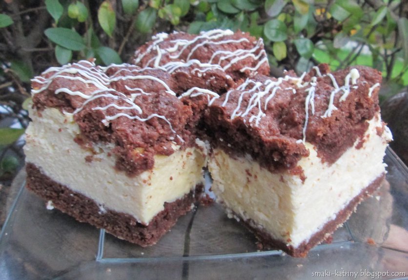 sernik na kakaowym cieście z polewą czekoladową -mięciuteńki i kremowy
