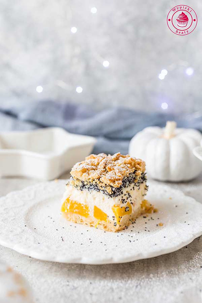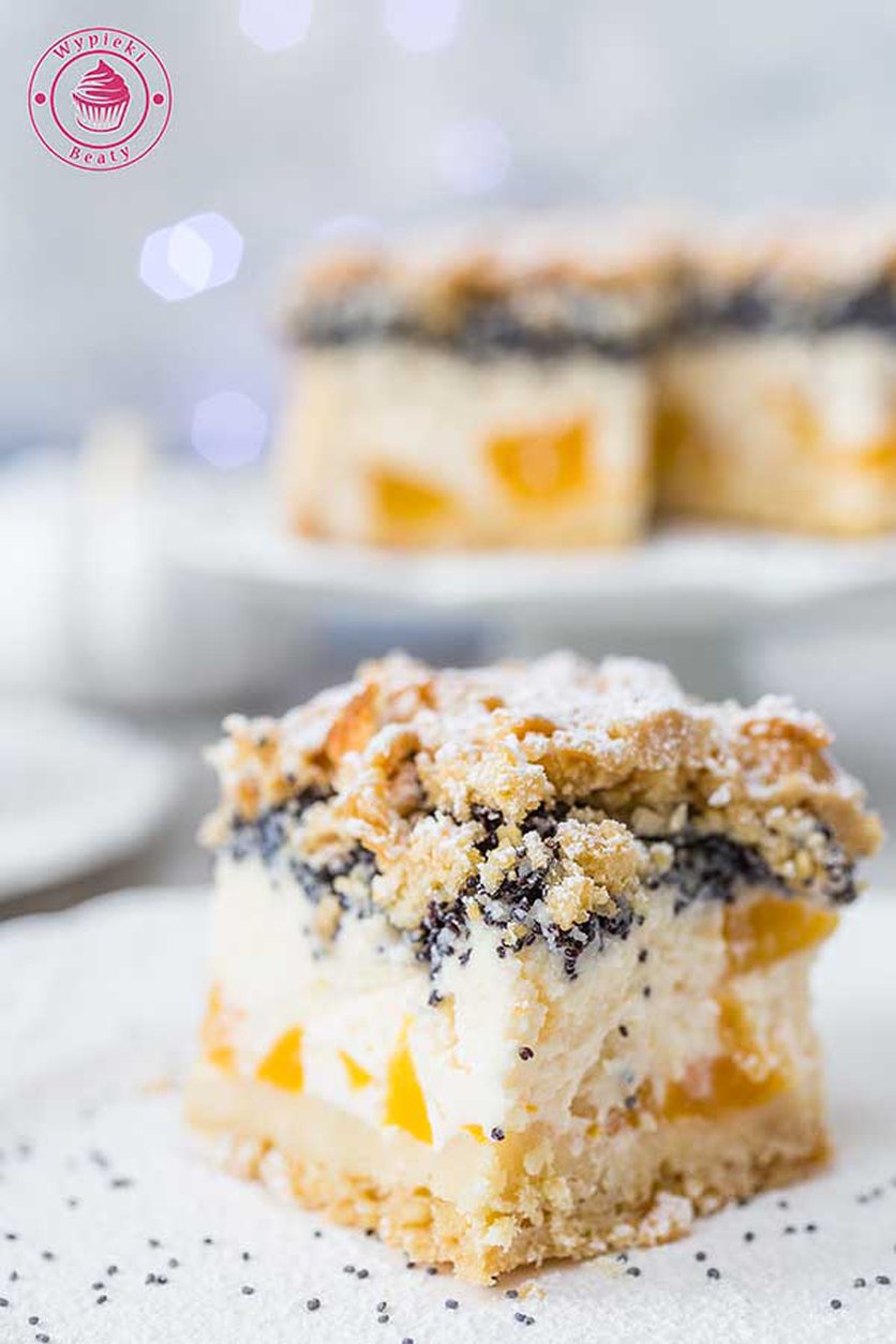 Sernik z brzoskwiniami i makiem