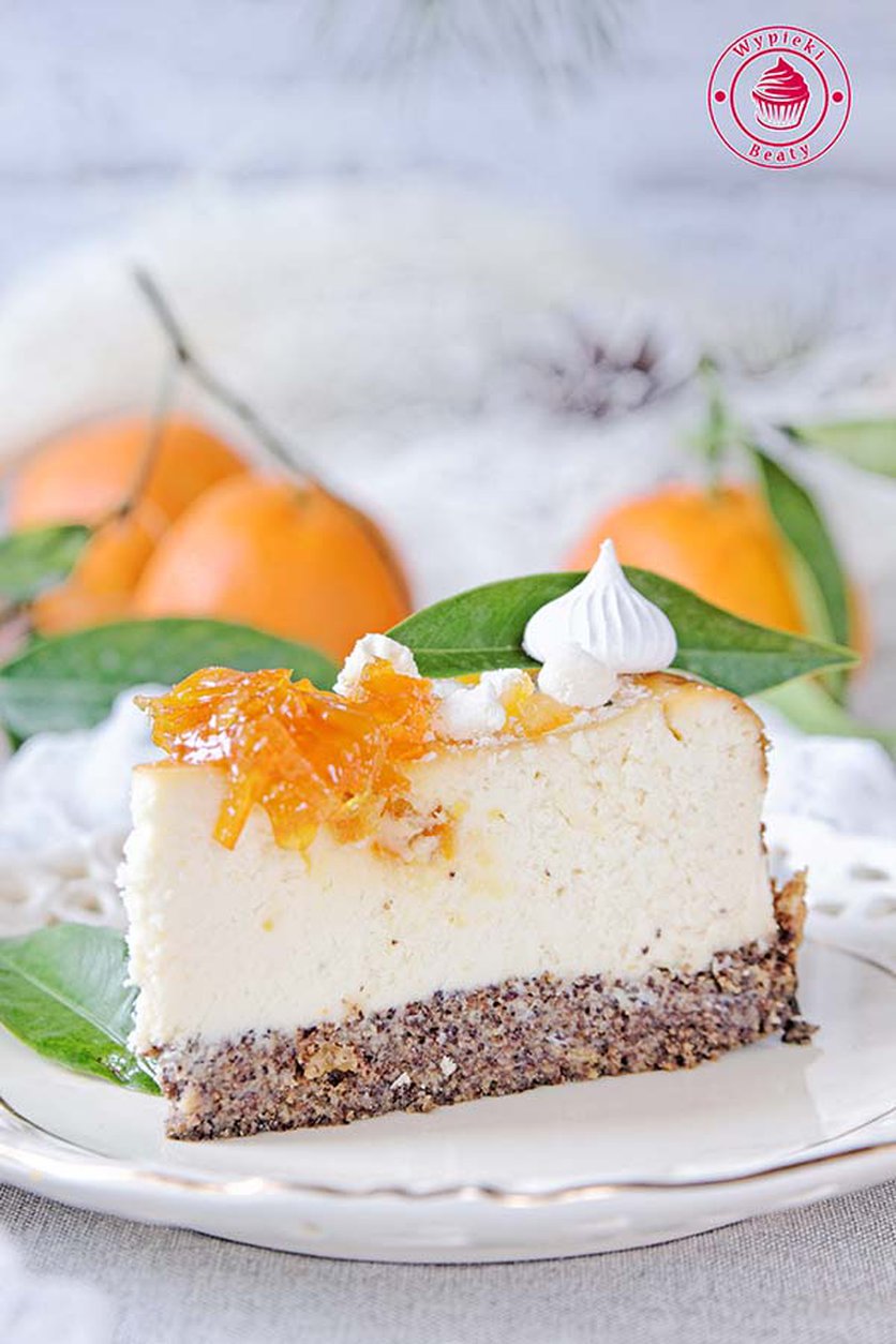 Pomarańczowy sernik na cieście makowym