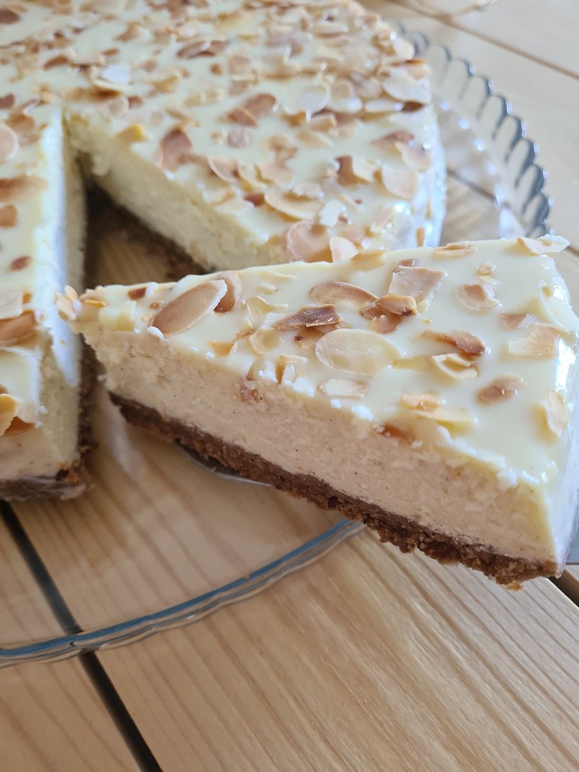 Sernik migdałowy z białą czekoladą