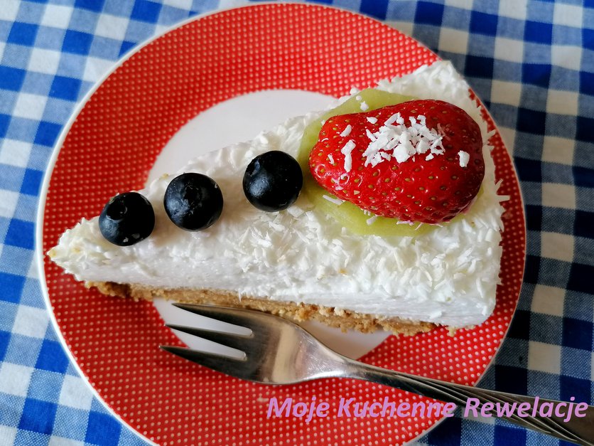 FIT kokosowy sernik na zimno z owocami (skyrnik bez cukru)