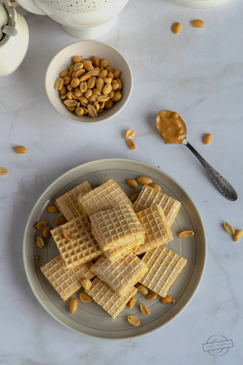 Wafle z masą śmietankową z masłem orzechowym i orzeszkami ziemnymi
