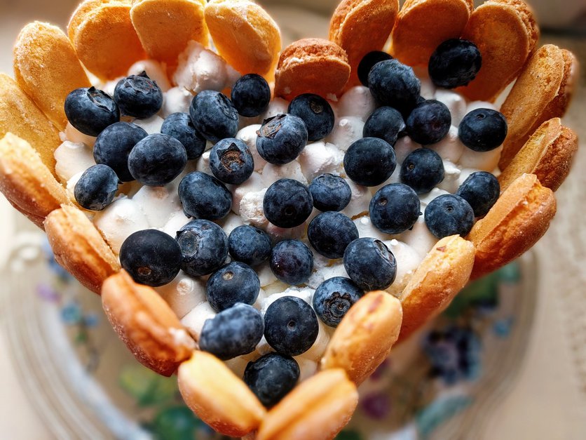 Tort waniliowo-czekoladowy z bezą i borówkami