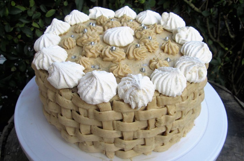 Tort kakaowy z kremem cappuccino i bezikami (pyszny i łatwy)