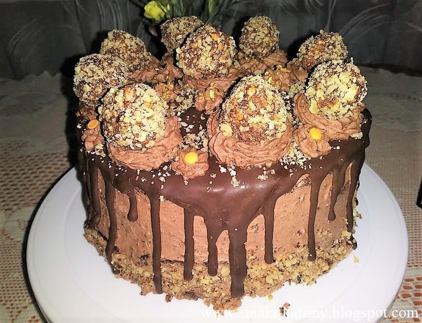 Tort ekstremalnie orzechowy drip cake, a'la ferrero rocher