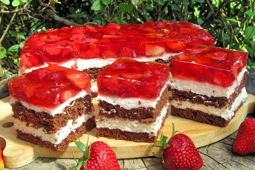 Tortowe ciasto z kremem grysikowym i truskawkami, galaretką-pyszne i łatwe