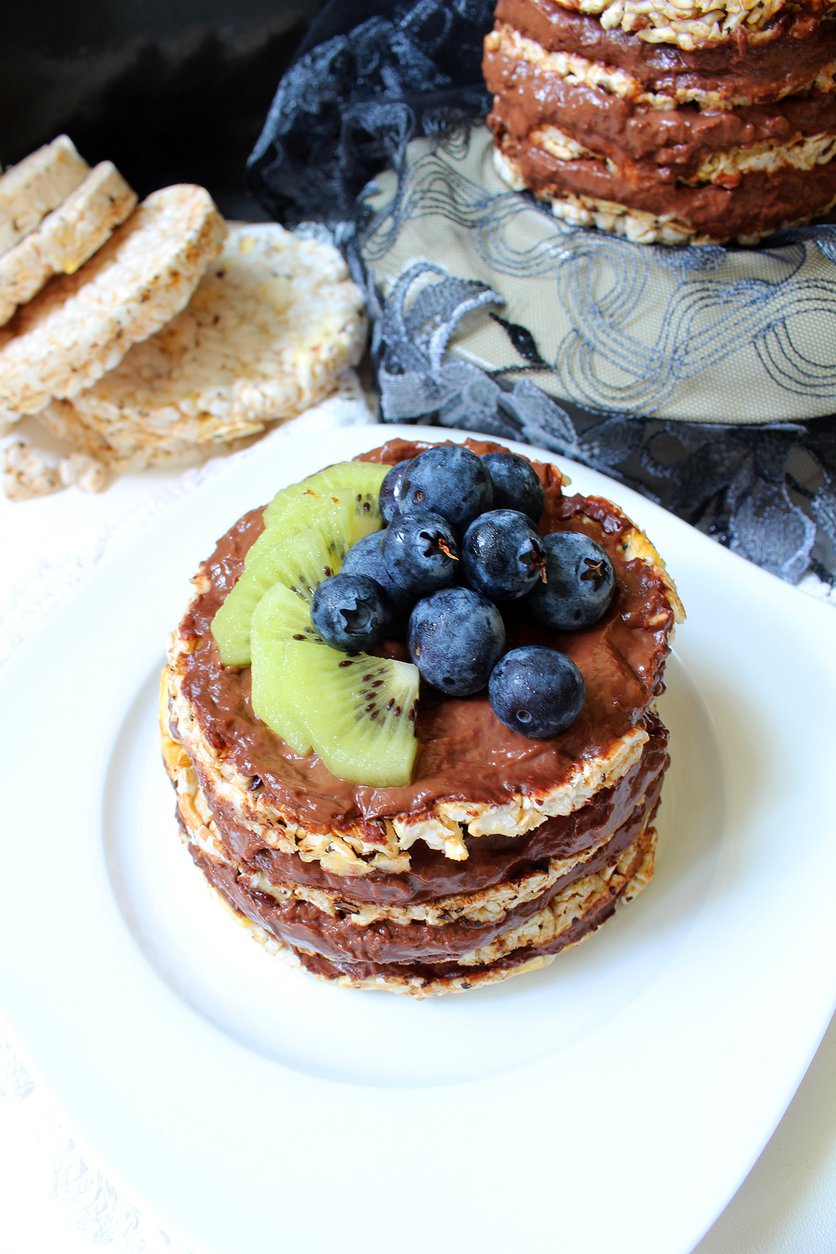 Torcik czekoladowy z wafli ryżowych z owocami