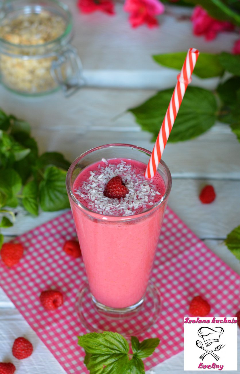 Koktajl malinowy z płatkami owsianymi