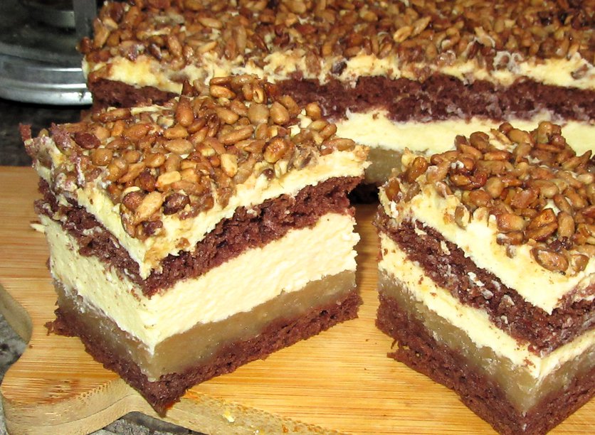 Ciasto jabłkowe z kremem i słodkim słonecznikiem